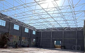 干煤棚網架主要搭建機構為平面剛架、平面桁架、平面拱以及柱面網殼結構。